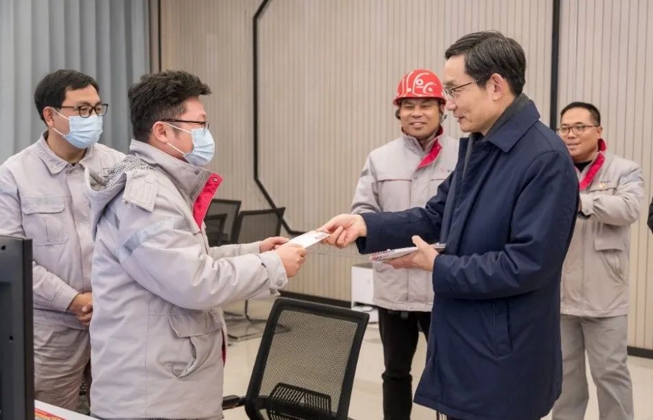 在中控室和智能化验室,,,,,,,,周育先探望了春节时代坚守一线的干部员工,,,,,,,,亲热询问他们的事情和生涯情形,,,,,,,,并送上《中国共产党第二十次天下代表大会》首日封作为纪念,,,,,,,,谢谢各人春节时代的坚守与支付,,,,,,,,希望各人不忘初心,,,,,,,,切记使命。。。。。。。
