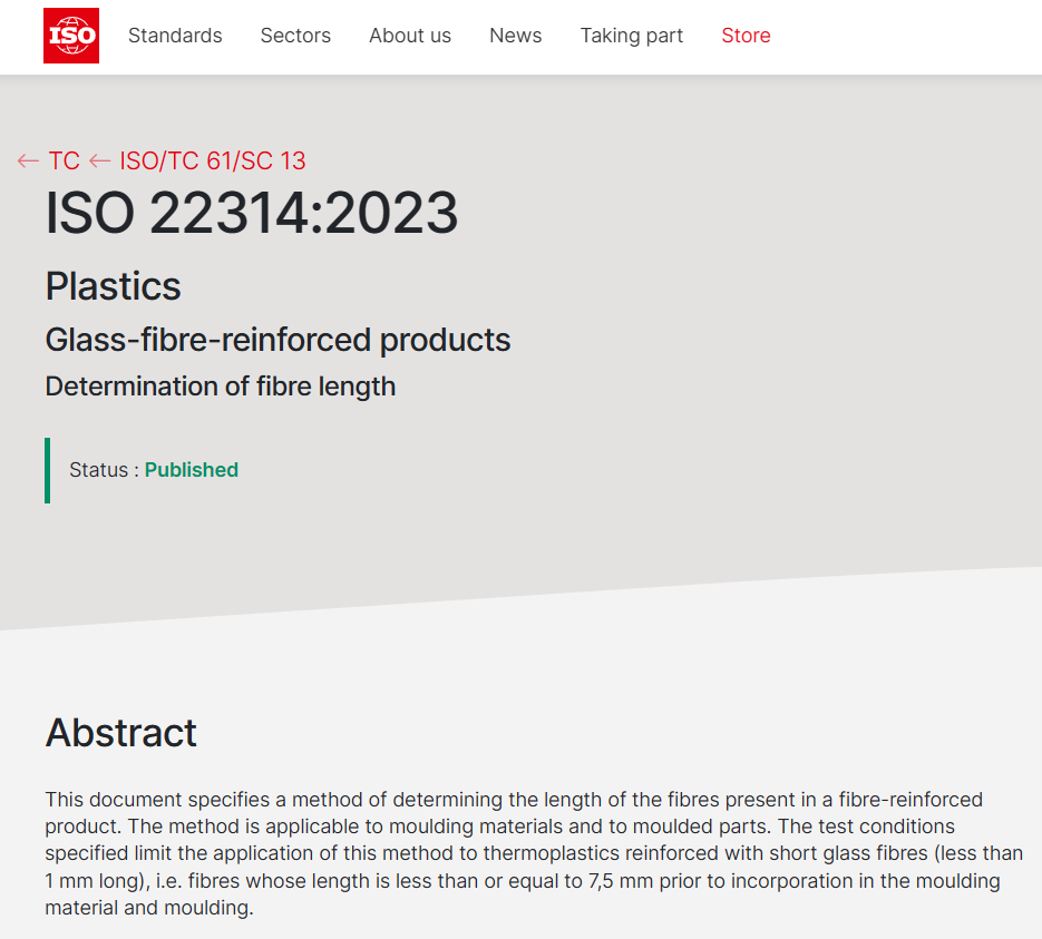 克日,,,,,北玻院首个主导修订的国际标准ISO 22314:2023《塑料玻璃纤维增强制品纤维长度的测定》(Plastics—Glass-fibre-reinforced products—Determination of fibre length)正式宣布。。。。。。。该标准划定了一种测定玻璃纤维增强热塑性复合质料制品中纤维长度的要领,,,,,通过煅烧法将玻璃纤维与树脂基体疏散,,,,,然后使用疏散介质举行疏散纤维,,,,,并使用显微镜及图像剖析软件丈量纤维长度。。。。。。。此次修订历时15个月,,,,,修订历程中,,,,,各阶段标准草案投票均获得10余个ISO投票权成员国100%的赞成票。。。。。。。该项标准的乐成宣布,,,,,标记着公司迈上国际标准制修订事情的新台阶,,,,,提升了中国在国际标准化领域的话语权。。。。。。。