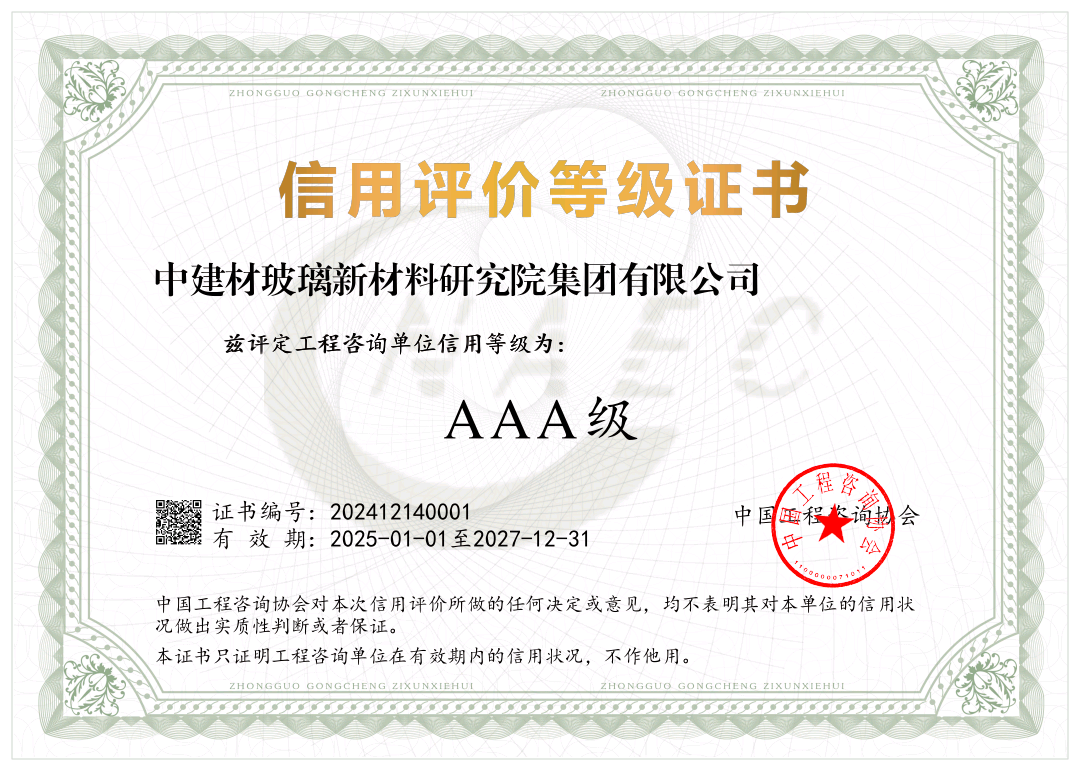 克日, ,,, ,中国工程咨询协会宣布2024年度工程咨询单位信用评价效果, ,,, ,中研院荣获最高AAA级信用评价, ,,, ,这是对中研院工程咨询事情综合能力、诚信谋划和卓越服务的高度认可, ,,, ,进一步牢靠了行业领先职位。。。。。。。。近年来, ,,, ,中研院集团工程咨询营业重点瞄准国家战略, ,,, ,围绕玻璃新质料相关专业通过提供涵盖项目全生命周期的全历程工程咨询服务, ,,, ,为国家、地区、行业及政府、企事业单位在政策研究、项目妄想、投融资等领域提供高质量智库服务, ,,, ,赢得了普遍信任与高度评价。。。。。。。。