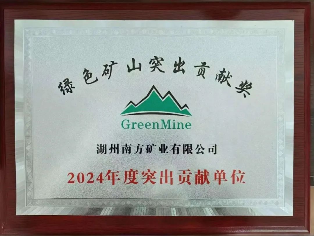 湖州南方矿业荣获“绿色矿山突出孝顺奖2024年度突出孝顺单位”
