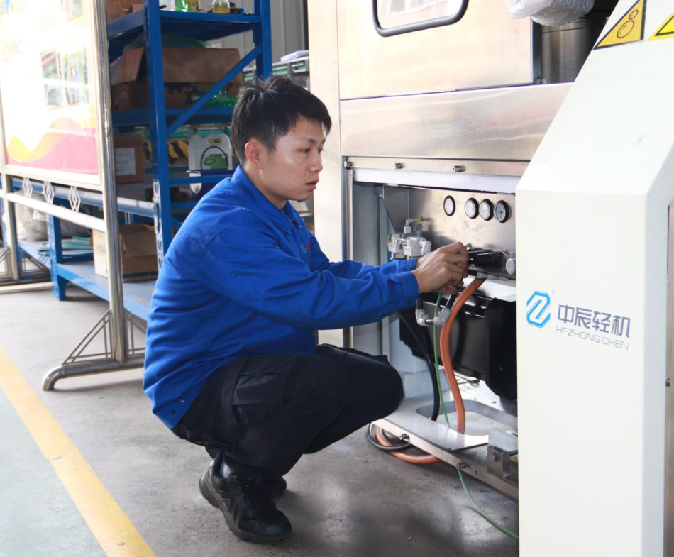 李海兵深知产品质量是让客户知足的要害,,,,,,,也是中辰品牌在强烈竞争中制胜的法宝。。。。。。只有永远坚持对事情的执着专注、对证量的不懈追求、对装配的矜持不苟,,,,,,,才华让产品拥有卓越性能,,,,,,,打造出海内一流,,,,,,,比肩天下先进水平的高速封罐机。。。。。。