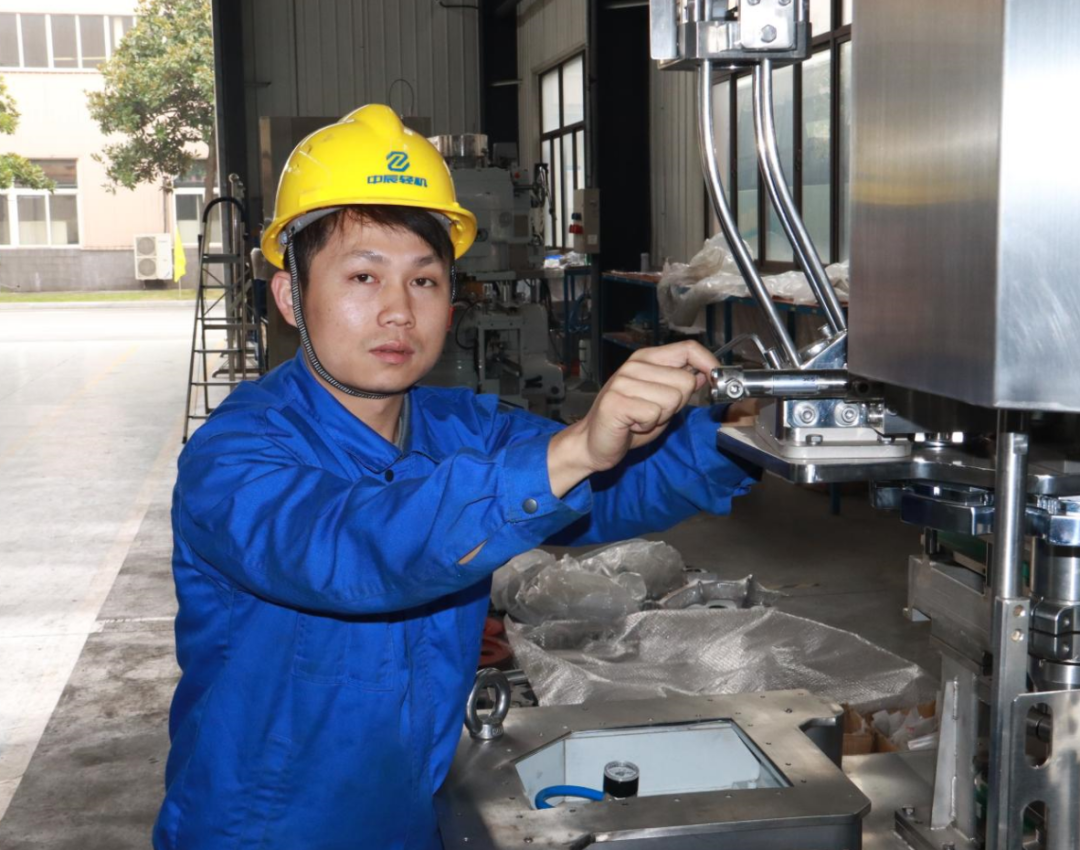 在山东锦旺装置调试现场,,,,,,,第一台中辰轻机自制的六头高速封罐机下盖系统每十多分钟就泛起一次漏盖,,,,,,,这在客户眼前可是“0容忍”。。。。。。李海兵不厌其烦,,,,,,,一连奋战36小时,,,,,,,对极其重大的下盖机构多次拆装、调解,,,,,,,情形显着好转。。。。。。此时,,,,,,,客户体现生产使命紧迫,,,,,,,装备状态已抵达可接受规模,,,,,,,可以举行量产。。。。。。可是李海兵以为自己还没有找到问题的基础缘故原由,,,,,,,仍有少少数漏盖保存,,,,,,,恳请再给他半天时间。。。。。。面临李海兵坚定的眼神,,,,,,,客户没有半点迟疑就允许了。。。。。。在一番仔细琢磨后,,,,,,,仔细极致的他发明了切换刀片的角度保存细微误差,,,,,,,可能影响拨盖精度,,,,,,,为了验证自己的判断,,,,,,,他重新替换了定制角度刀片,,,,,,,最终彻底解决了漏盖问题。。。。。。让在场的客户向导和工友投去尊重而又钦佩的眼光。。。。。。
