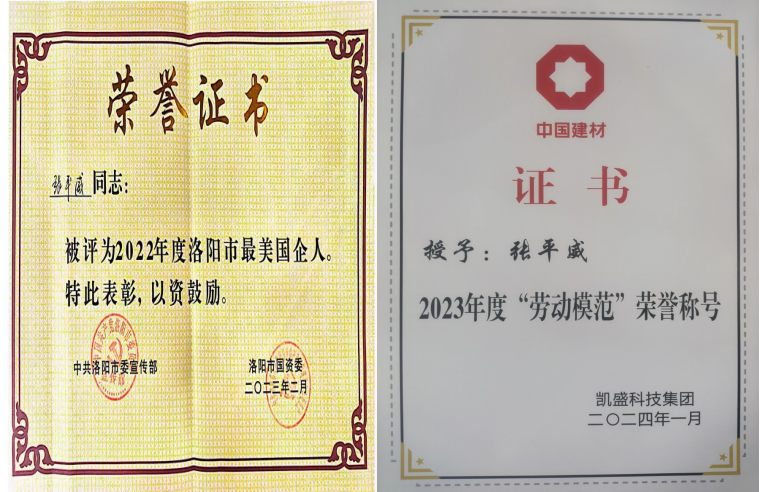 张平威作为洛阳市第十六届人民代表大会代表,,,,,,驻足企业现实,,,,,,围绕新能源风口工业高质量生长起劲建言献策,,,,,,呼吁逐步完善相关制度包管和基础设施建设,,,,,,推动战略性新兴工业在新赛道上蓬勃生长。。。。。相继荣获2006年洛玻集团“优异共产党员尖兵”,,,,,,2007、2008年渑池县、三门峡市“先进事情者”,,,,,,2022年度洛阳市“最美国企人”,,,,,,2022、2023年度凯盛科技集团“优异共产党员”“劳动模范”等多项称呼。。。。。