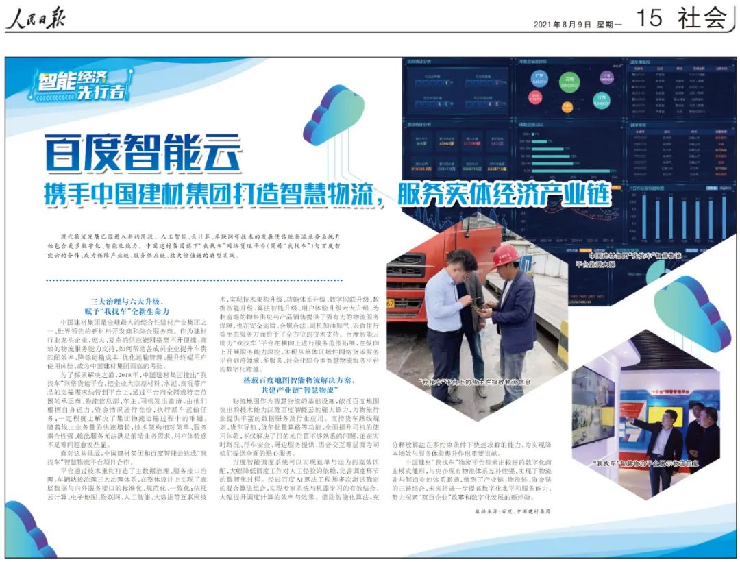 媒体走进中韦德网站官方入口 | 人民日报一连两天报道:打造“我找车”智慧物流平台+玻璃平台多措并举节能降耗