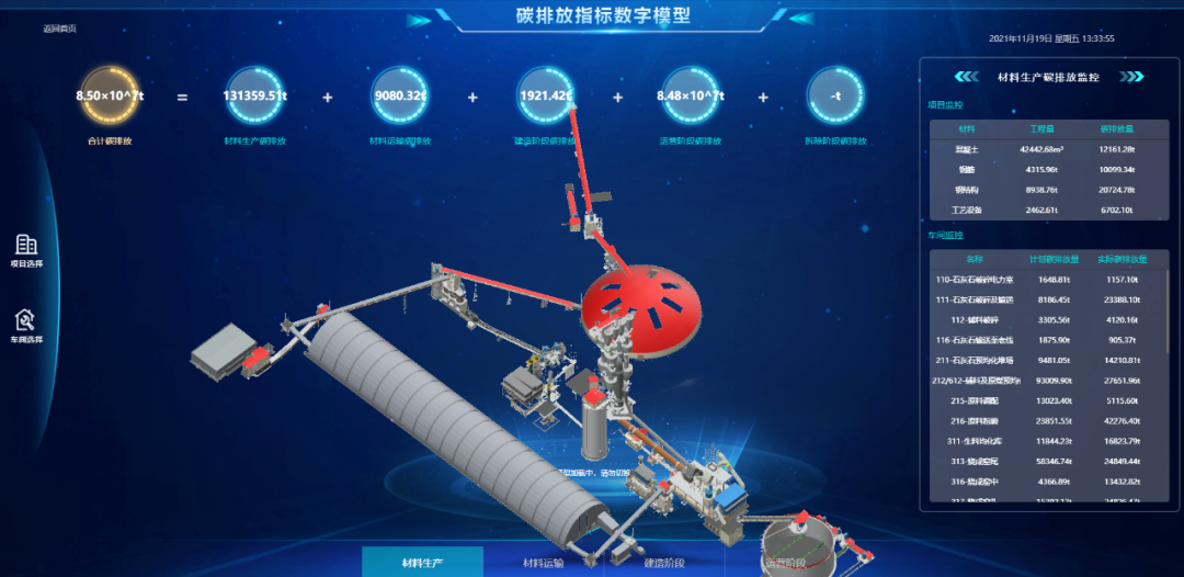 一直完善水泥工程建设全生命周期数字化解决计划,,,,,,率先在行业内实现二维设计向三维数字设计的厘革。。。。。。。。自主开发的工厂碳排放数字化核算平台,,,,,,实现了对工厂全生命周期碳排放的细腻化盘算和实时动态监控,,,,,,引领行业绿色设计、绿色制作