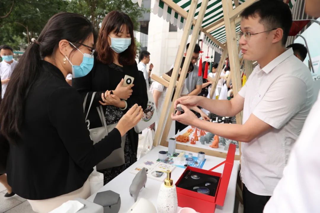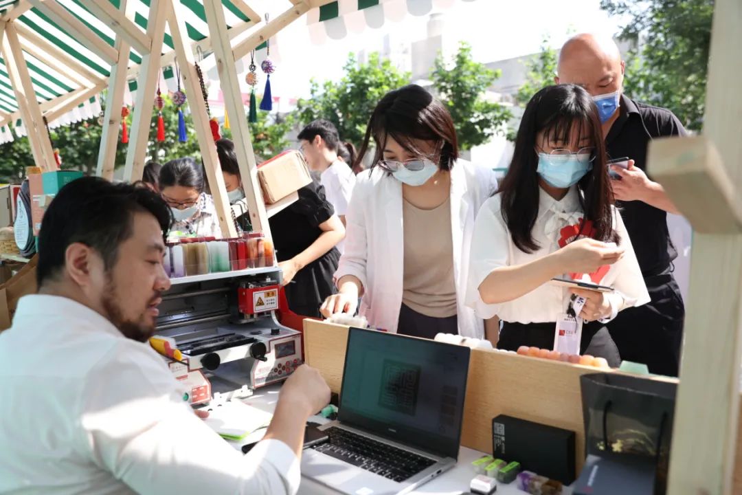 开放云仪式前后,,,,,国资委宣传局向导、中央企业党史学习教育第六指导组向导和组员,,,,,集团向导,,,,,人民日报、新华社、央视等30家主流媒体的记者朋侪一起逛文创集市。。。。。两日来,,,,,文创集市吸引众多国海办公区各企业宽大干部员工。。。。。
